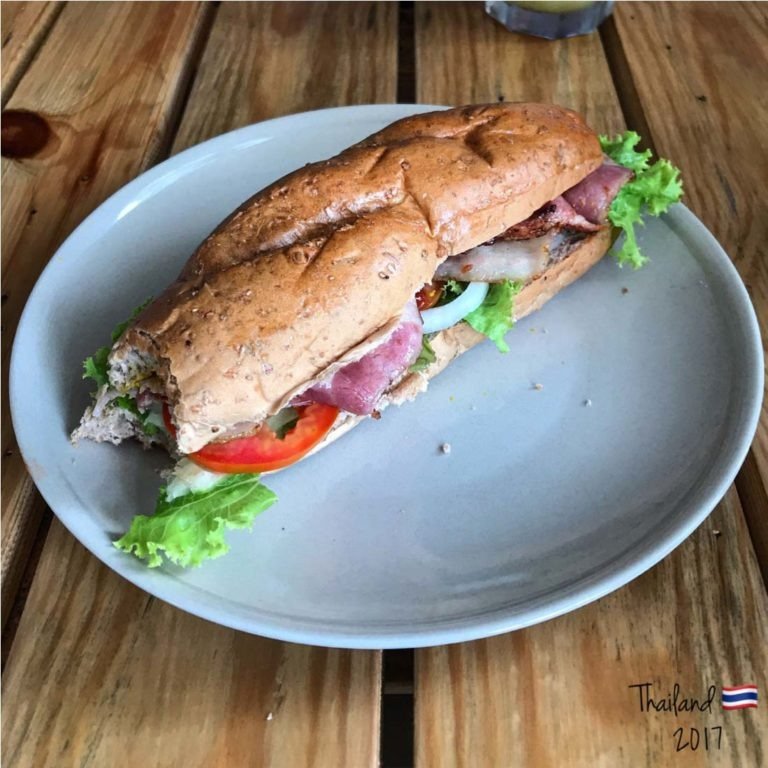 Just had my Bacon sandwich at a restaurant in front of the pier. Just before boarding our ferry to Koh Phangan